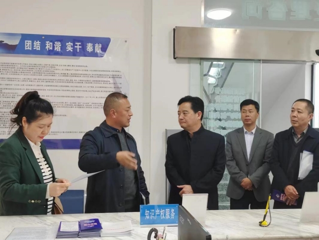 11月8日,安徽省市場監(jiān)督管理局知識產(chǎn)權(quán)公共服務(wù)處處長孫杰、省市場監(jiān)管局四級調(diào)研員袁立新在黃山市市場監(jiān)管局黨組成員、副局長張妮,歙縣市場監(jiān)督管理局局長江志偉等陪同下到我中心就企業(yè)知識產(chǎn)權(quán)工作進行實地調(diào)研。